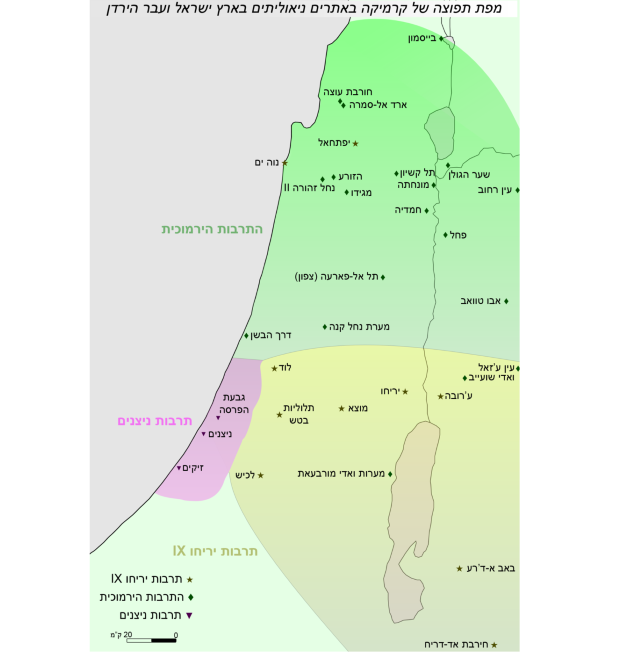 מפת האתרים מהתקופה הניאוליתית הקרמית בארץ ישראל