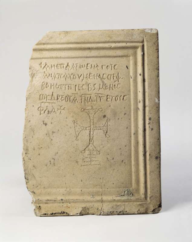 מצבת קבר משבטה עם צלב. המאה השביעית לספירה. שלהי התקופה הביזנטית