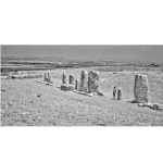 8 (או 10) מצבות מונוליטיות מאבן (Stone) בגדלים שונים מ"מקדש במה" בתל גזר ואגן (Basin) אבן (Stone) מרובע מסותת ששימש ככל הנראה למטרות ניקוי או לצורך היקוות דם או נוזלים בהליך דתי. אפשר והמצבות נועדו לסמל לדורות הבאים הסכם שנערך בין שבטים (או בין ערי ממלכה) בגודל ובחשיבות שונה. מצבות האבן (Stone) נמצאו קבורות בתוך הקרקע (למעט שתיים שראשן היה חשוף), חלקן הפוכות וחלקן קבורות, בחפירות מקאליסטר בתל גזר בתחילת המאה ה-20. גובה חלק מהמצבות עולה על 3 מטרים. לאחר החפירה כוסו המצבות והם נחשפו מחדש עשרות שנים מאוחר יותר. תקופת הברונזה (Bronze) התיכונה 2. בין הסלעים לא היו מרחקים שווים, או גבהים וצורה שווה. אולם רובם חולקים שתי תכונות: האחת, רמת החספוס הנמוכה בצד המערבי של הסלע לעומת הצד המזרחי, והשנייה בחורים שנחצבו לתוך האבן (Stone), אולי למטרת נשיאתם. מקור אחד הסלעים (השביעי) הינו מחומר שמקורו אינו בגזר. אחת הסברות שהועלו לגבי אגן (Basin) האבן (Stone) (השונה בצורתו מכל המצבות) היא היותו מזבח, אולם שום סימני שרפה לא נתגלו בו ולסברה זאת אין ביסוס.  מקאליסטר שיער כי אגן (Basin) הסלע שימש כבסיס לאשרה (מעץ?), כחלק מטקסי הסגידה לה. ואולם סביר יותר להניח שהאגן (Basin) שימש למטרות ניקוי טרם ביצוע טקס פולחני דתי. בין הצילומים ניתן לראות את מצב המצבות והאגן (Basin) בעת גילויין כפי שפורסם בגמר החפירות על ידי מקליסטר (כולל חתך הממצא). יתכן ו-2 מהאבנים (הקטנות) אינן מצבות. תקופת הברונזה (Bronze) התיכונה 2.