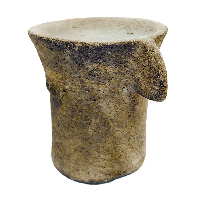 “אליל בית” בצורת מקטר-עמוד עגול מבזלת, מגולף כראש אדם עם אף “נשרי” גדול ושקע קל בראש. טיפוס רמת הגולן. התקופה הכלקוליתית