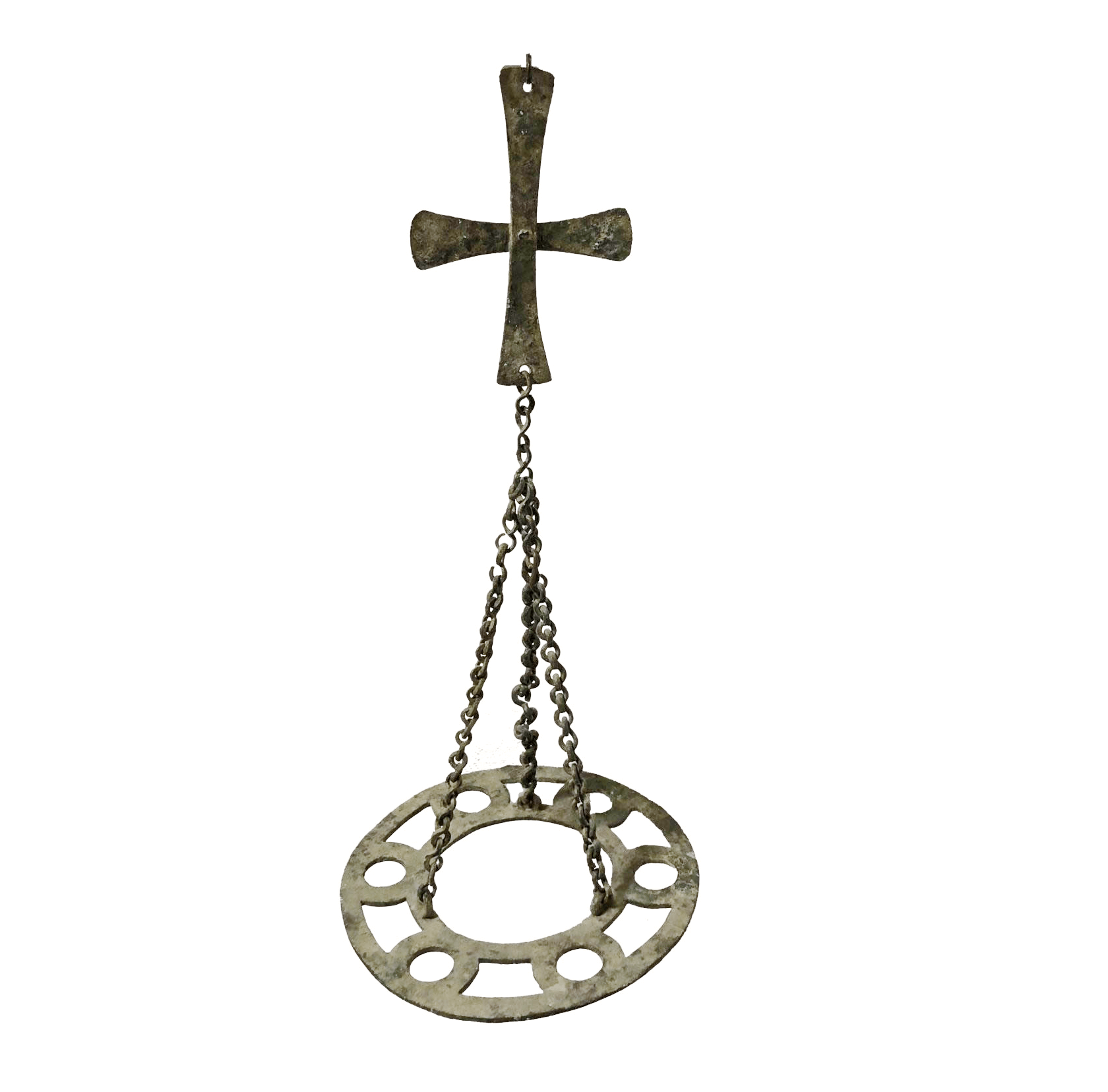 מתקן תלוי מברונזה (Bronze) לנרות שמן מזכוכית (glass) (במקור: 6 “כוסות” זכוכית (glass) שלא שרדו), עם צלב ושרשרת (Chain). היה נתון בכנסיה. התקופה הביזנטית
