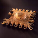 נר שמן מפואר מרובע עם 21 פיות. התגלה ככל הידוע בבקעת הירדן. המאה הראשונה לספירה