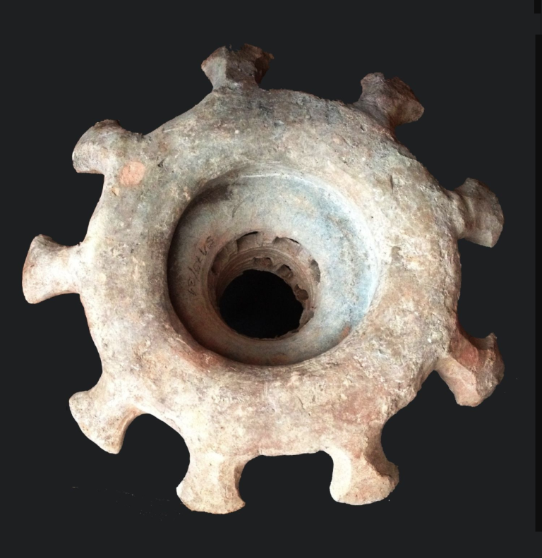 נר שמן עם 9 פיות ו”מגדל” עם חלונות במרכזו, הרודיאני, המאה הראשונה לפני/אחרי הספירה