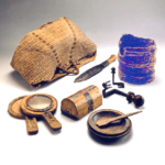"סל מטמון" עשוי ממחצלת שהוחבא בנישה נסתרת ב"מערת האיגרות" שבנחל חבר על ידי מורדי בר-כוכבא, בו נארזו קופסת תכשיטים עשויה עץ (תכולתה היתה ריקה), 3 מפתחות, קערות עץ, מראה לה ידית (Handle) עשויה מעץ, 6 סכינים, זוג סנדלים של אשה ועוד. (רק חלק מהפריטים בצילום). התקופה הרומית הקדומה