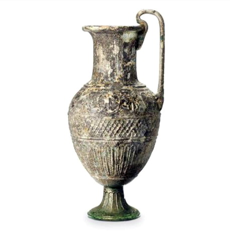 פך זכוכית מהודר, ירוק-אפור, נושא את שם האומן “אניון” (כנראה צידוני). המאה הראשונה לספירה.