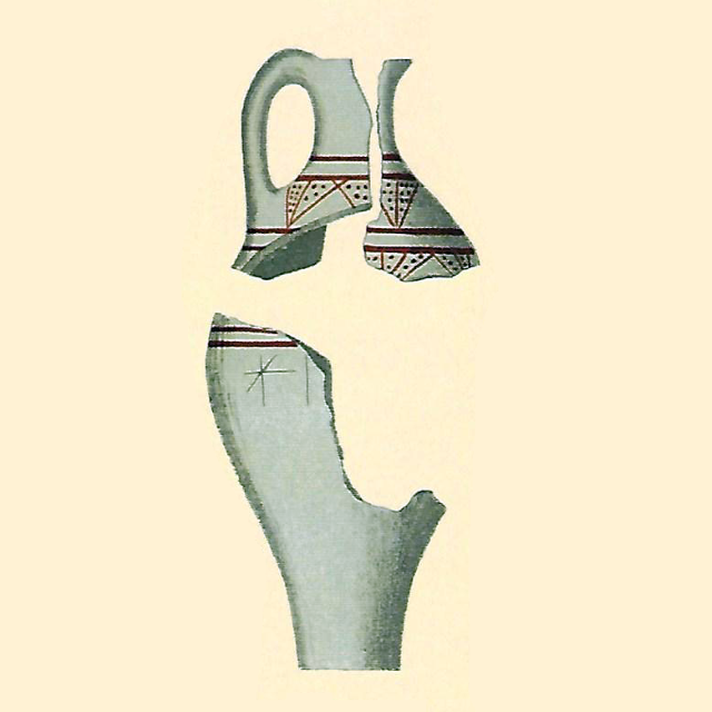 פך חרס מקברי המלכים הראשונים במצרים, מאבידוס (דרום מצרים), תקופת הברונזה הקדומה ב’