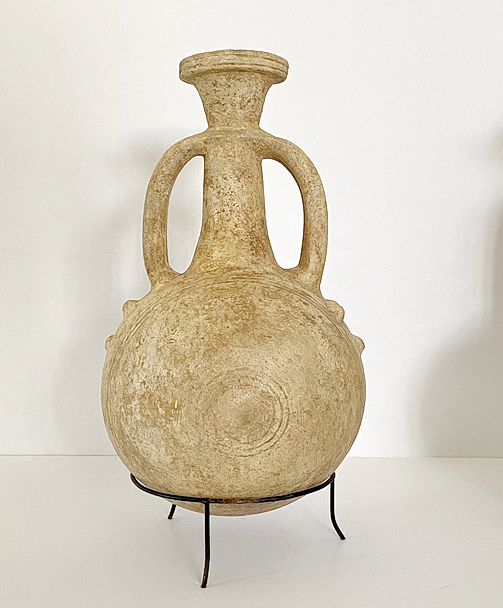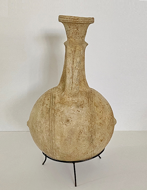 פך חרס עשוי מטין לבן. חיקוי לכלי מתכת. בצידי הפך בליטות המדמות מסמרים. טיפוס דרום יהודה-בקעת באר שבע (התגלה לפי דיווח באזור סמוע). תקופת הברזל 2
