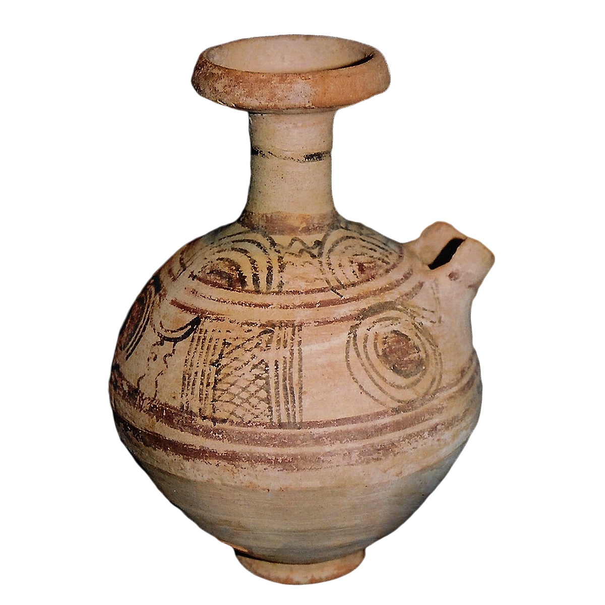 פך מעוטר עם חדק סינון. עם מוטיבים פלישתיים. תל אזור (ממצא פרטי. נרכש). תקופת הברזל 1