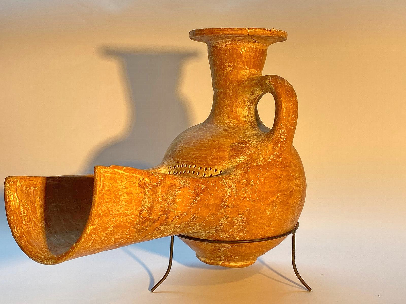 פך עם חדק ארוך ומסננת, מחופה אדום. תקופת הברזל 2