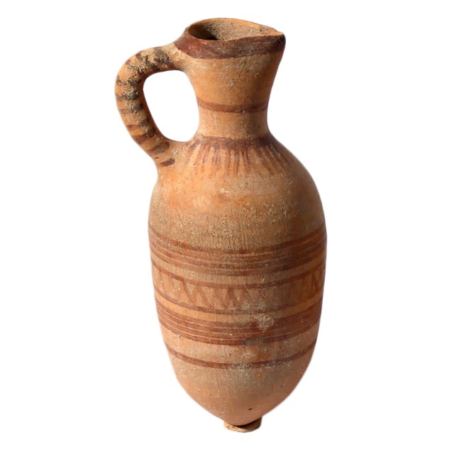 פכית (בסיס קונוס), מעוטרת בקווים גיאומטריים, תקופת הברונזה התיכונה 2 פריטים מקבילים: מגידו, אוסף עודד גולן