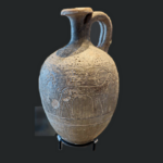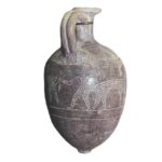 פכית עם סצנה של צייד, מעוטר בדיקור בטכניקת “תל אל יהודיה”. תקופת הברונזה (Bronze) התיכונה 2