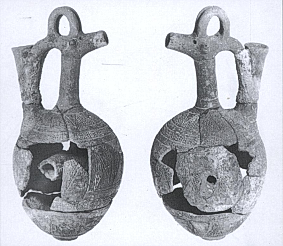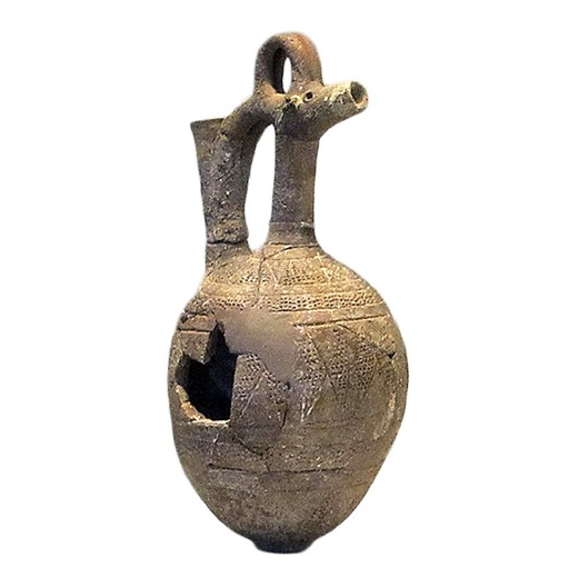 פכית עם ראש בעל חיים, מעוטר בדיקור תל אל יהודיה, תורען, תקופת הברונזה התיכונה 2