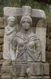 פסל איסיס – אלה מצרית המופיעה בדמות טיכה אלת המזל של העיר, על ראשה כתר והיא אוחזת בידה כהן של האל המצרי סרפיס. נמצא במבנה העמודים (הבסיליקה של העיר) מהתקופה הרומית המאוחרת (מאה 3 לספירה). החצר של הבסיליקה היתה מוקפת טורי עמודים ואגפים מכל צד, שקירותיה ורצפתה נבנו משיש. ובה התנהלו החיים הציבוריים של העיר. אורך הבסיליקה