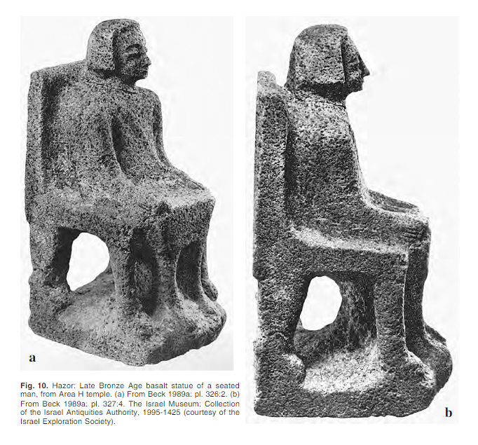 פסל מלך או אל יושב בכסא. אבן בזלת. תל חצור. תקופת הברונזה המאוחרת