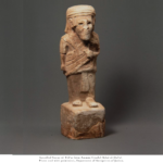 פסל שליט עמוני מאבן (Stone) גיר עם כתובת עמונית בבסיס הפסל (statue) (Statue). מצודת רבת עמון ירדן. המאה השמינית לפנה”ס. תקופת הברזל 2