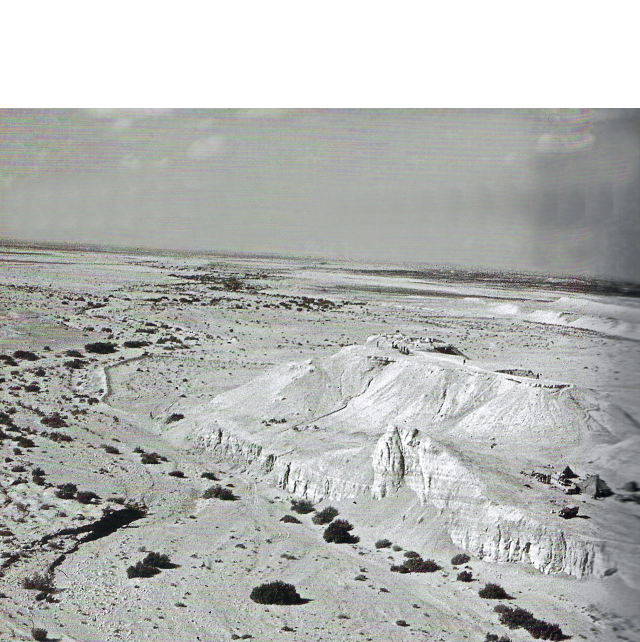 צילומי אוויר מאתר המצודה כונתילת עג’רוד במזרח חצי האי סיני במהלך החפירות ותרשים איזומטרי של מבנה A (אחד משני המבנים המרכזיים במצודה). באתר, שהיה מיושב במאות התשיעית והשמינית לפנה”ס נתגלו 55 כתובות בעברית, בעלות איפיון צפוני