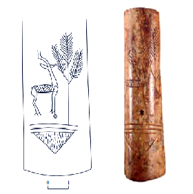 צלמית אשה (?) מעצם, מעוטרת באייל ובעץ בחריטה (חפץ זואומורפי). קיבוץ הגושרים, התקופה הכלקוליתית הקדומה