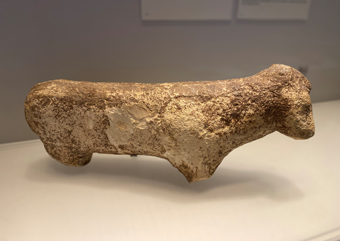 צלמית בעל חיים עשויה מאבן (Stone) גיר. כברי (הגליל המערבי). התקופה הניאוליתית הקדם קרמית ב'
