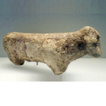 צלמית בעל חיים עשויה מאבן (Stone) גיר. כברי (הגליל המערבי). התקופה הניאוליתית הקדם קרמית ב’