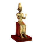 צלמית ברונזה (Bronze) מחופה (slip) בזהב (Gold) של אל (או מלך) יושב, תל מגידו, המאה ה-13 לפנה”ס (שכבה VI או VII), שלהי תקופת הברונזה (Bronze) המאוחרת