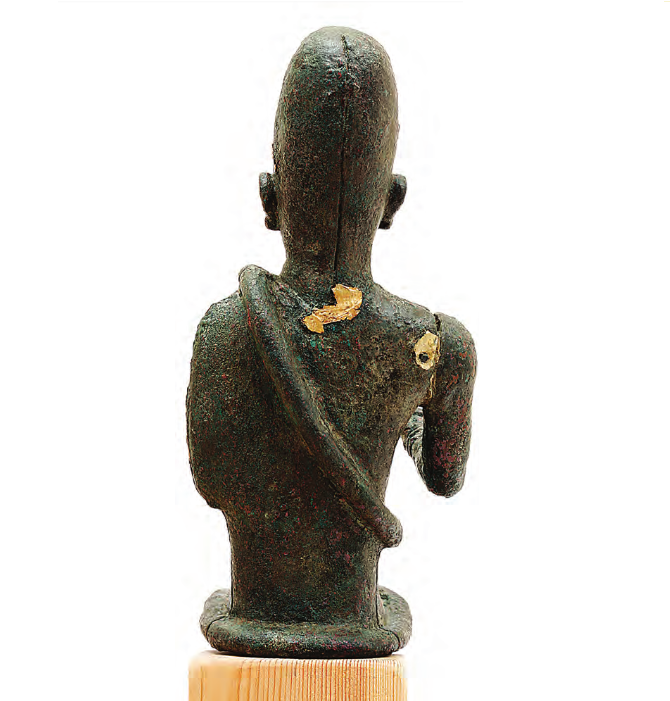צלמית ברונזה של מלך או אל עם גלימה. במקור היה מחופה בזהב. תל חצור. תקופת הברונזה המאוחרת