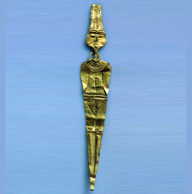 2 צלמיות זהב (Gold) שטוחות “גזורות” (לוחיות). תל גזר. תקופת הברונזה (Bronze) התיכונה 2
