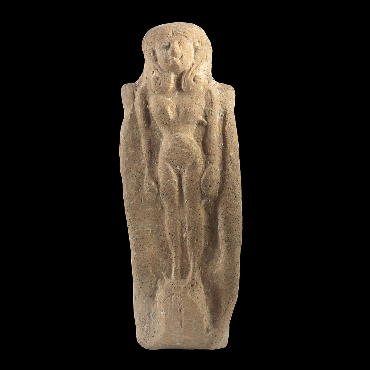צלמית כנענית (חרס) ממינת אל בידה (סמוך לאוגרית, כ-10 ק"מ צפונית ללטקיה, בצפון-מערב סוריה). תקופת הברונזה המאוחרת
