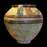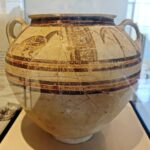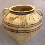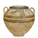 קדרה מעוטרת בציפורים ובקווים. עיטור בי-כרומו (דו-גוני אדום-שחור). תל אל עג’ול. תקופת הברונזה (Bronze) המאוחרת