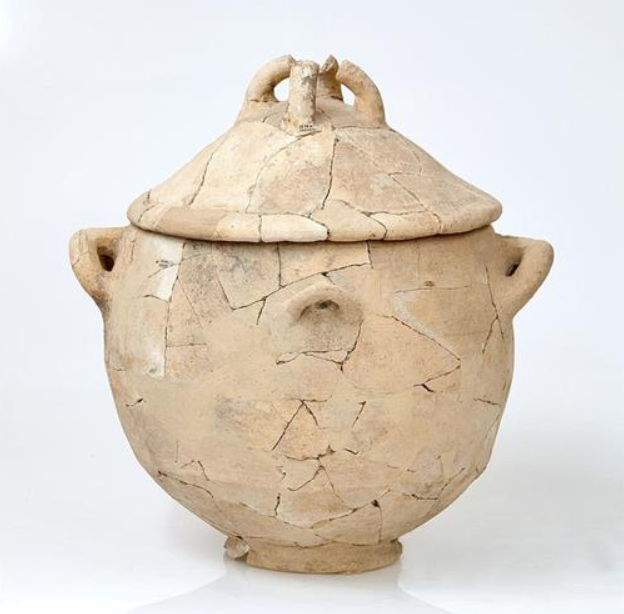 קדרה עם 4 ידיות, עם מכסה גדול בעל 4 ידיות אוזן בחלקו העליון, תל רחוב, תקופת הברזל