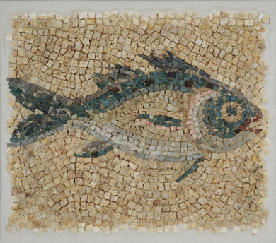 קטע רצפת פסיפס עם דג. התקופה הביזנטית