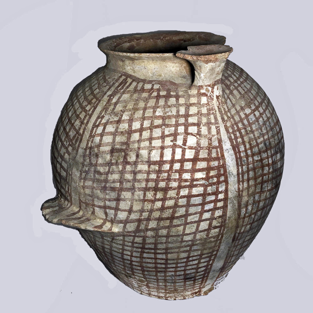 קנקן עם תושבת מעוטר בפסים שתי וערב. תקופת הברונזה (Bronze) הקדומה 1
