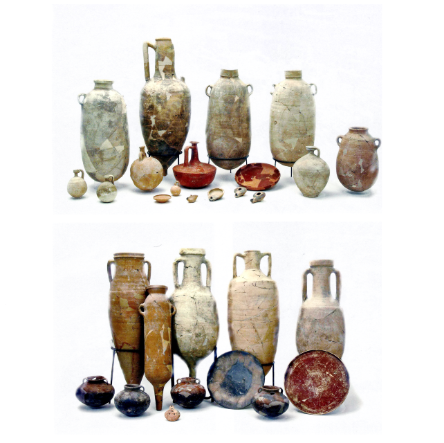 קנקנים (חלקם ייבוא מרומא), כלי (Vessel) טרה סיגילטה, סירי בישול, צלחות ופכיות מחפירות העיר העליונה בירושלים (שכבה 4). התקופה ההלניסטית המאוחרת