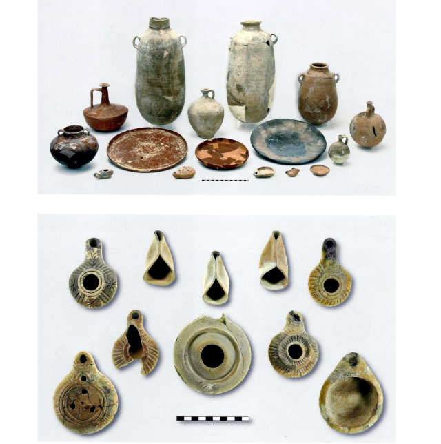 קנקנים, טסים, צלחות, פך (Jug) טרה-סיגילטה, פכיות ונרות שמן הרודיאנים ויוונים מחפירות העיר העליונה בעיר העתיקה בירושלים. התקופה ההלניסטית המאוחרת