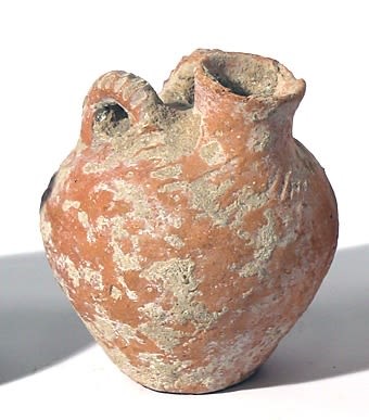 קנקנית, עם חדק פונה כלפי מעלה ו-2 ידיות סל, ברונזה קדומה 1א