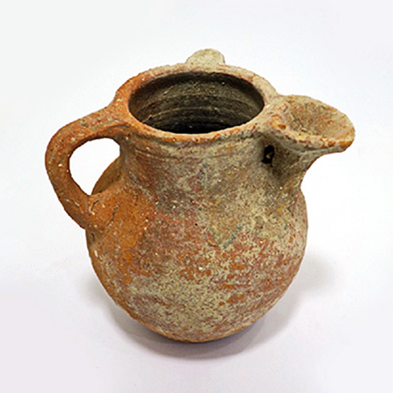קנקנית עם 2 ידיות ותושבת (חדק), בצורת קנקן (Jar) בעל 3 ידיות ותושבת-חדק. יהודה. תקופת הברזל 2