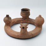 בצילום השני: קרנוס (Kernos) עם ראש פר, 2 רימונים ומיכל מילוי בצורת כד מקפריסין