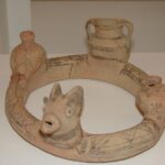 קרנוס עליו 2 רימונים, ראש בע”ח (שור) ומיכל מילוי. ראש זית (גליל עליון). תחילת תקופת הברזל 2
