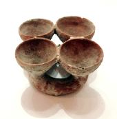 קרנוס (כלי פולחן) עם 4 כוסות, המונחות על גבי צינור טבעתי, ומחוברות ביניהן. טיפוס באב-א-דרע (מזרח הלשון של ים המלח). תקופת הברונזה (Bronze) הקדומה א