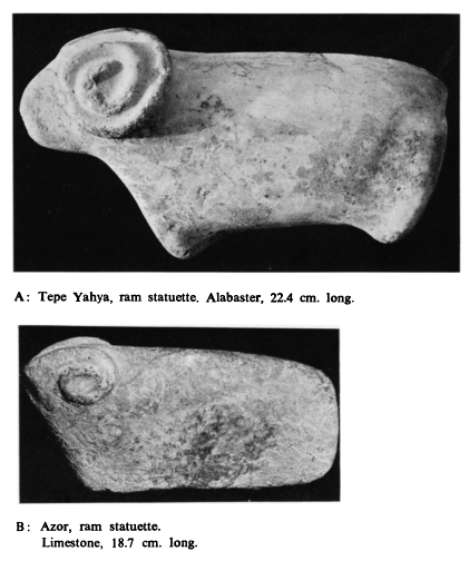פרופ' רות עמירן מצאה כי קיים דימיון בין צורת קרני האייל (הספירליות) לזו של ממצא אבן דומה מ Tepe Yahya (טפה יחיה) בדרום-מרכז רמת אירן (ראה צילום ממאמר שפירסמה). ממצא דומה נמצא גם בכברי (בצפון מערב ישראל) ובתל מוצא (ליד ירושלים).