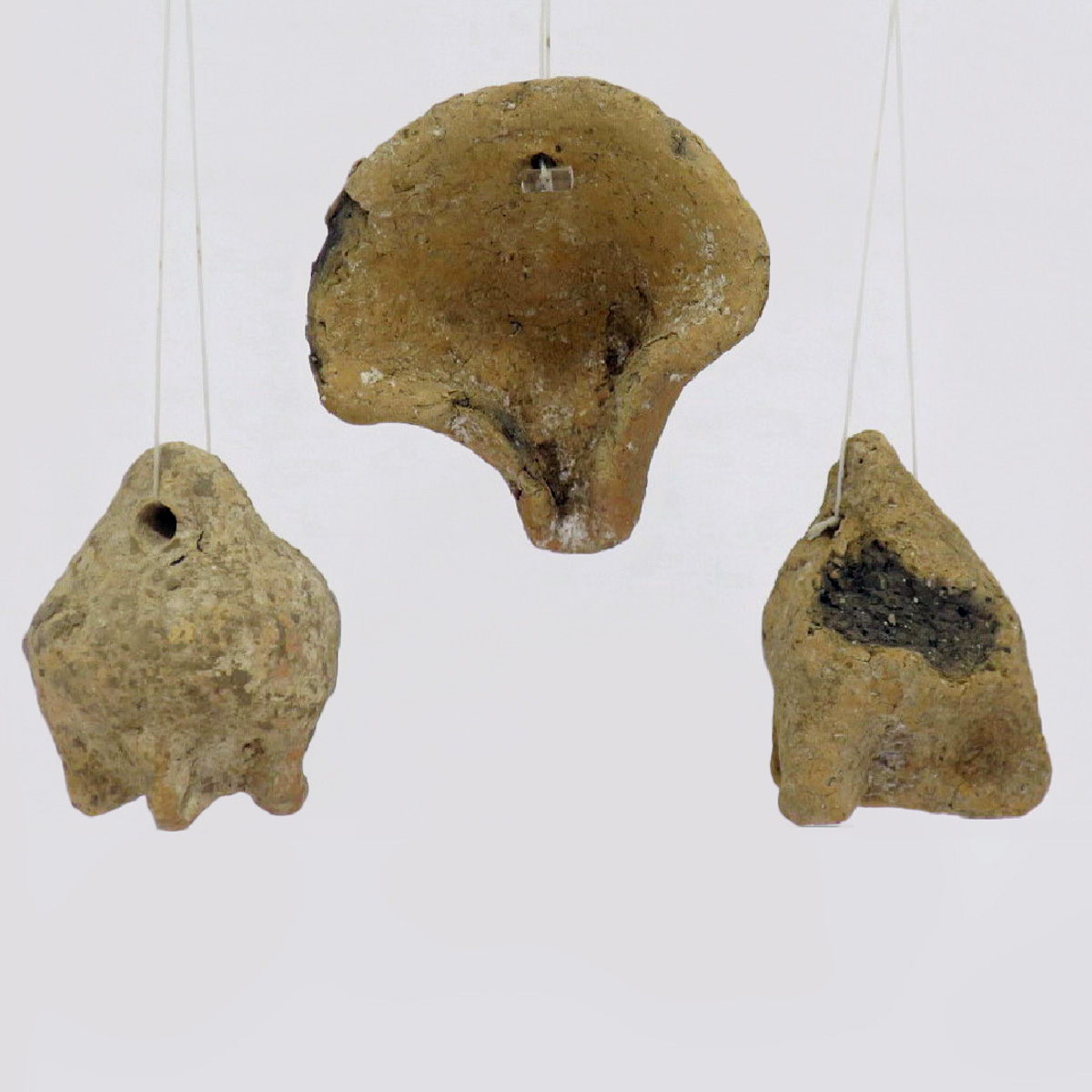 רימון ו-2 נרות לתליה, כנראה בכניסה למקדש, תקופת הברזל 1