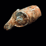 ריתון ראש אייל מפאיינס (Faience), בצורה הדומה לריתון (Rhyton) שנתגלה בתל אבו הואם (חיפה). נמשה מהים מספינה שנטרפה ליד אולובורן (Uluburun) בדרום תורכיה. תקופת הברונזה (Bronze) המאוחרת
