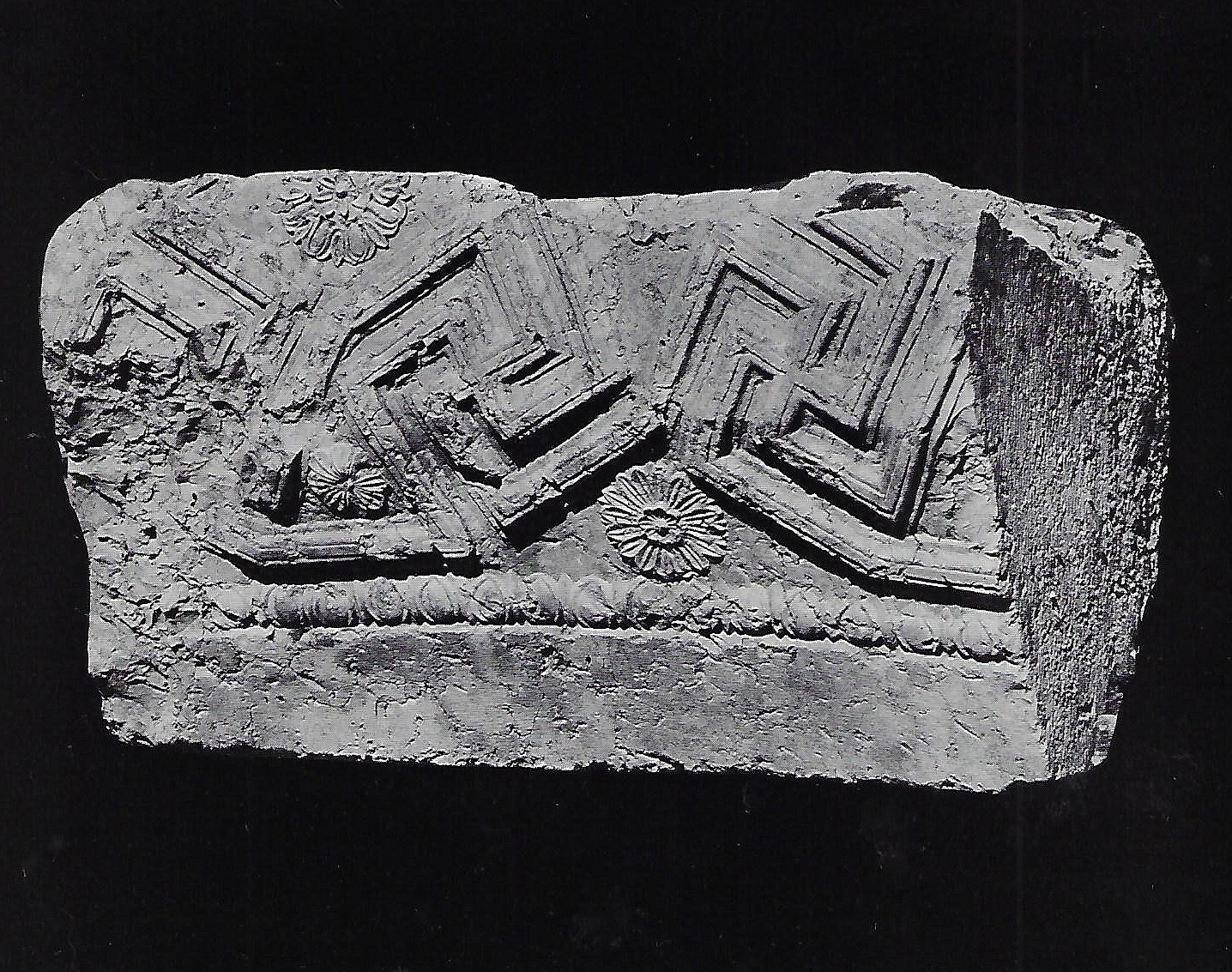 שבר אבן מעוטרת גיאומטרית במוטיב מינדר מהר הבית, ירושלים. התקופה הרומית הקדומה