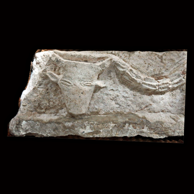 שבר סרקופג עם תבליט ראש שור. התקופה הרומית המאוחרת