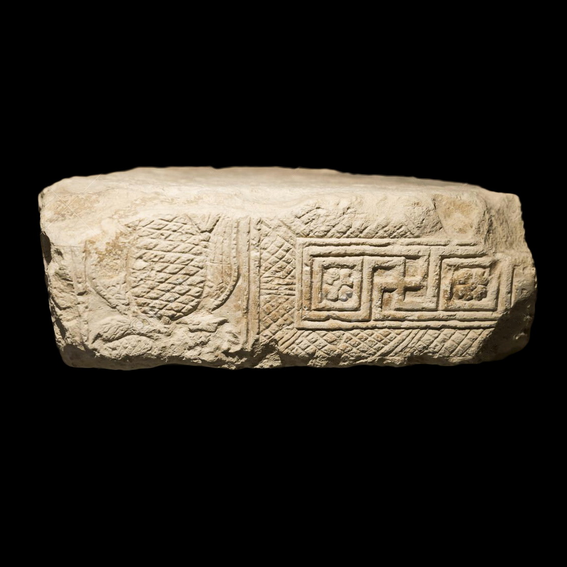 שבר שולחן אבן (Stone) מעוטר בצידו. התקופה הרומית הקדומה