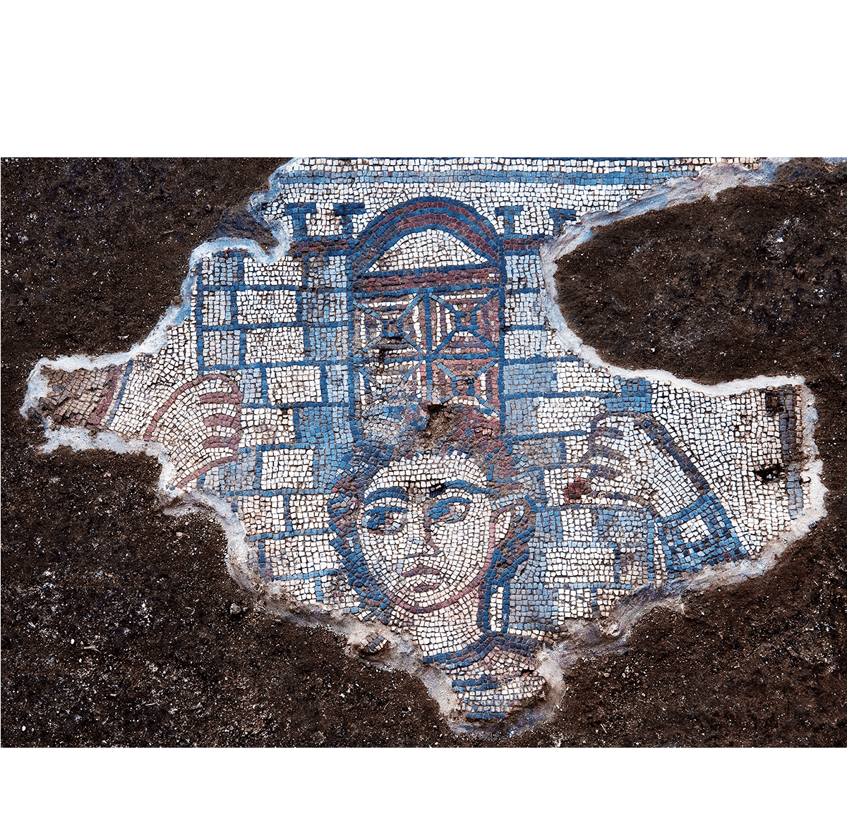שמשון הגיבור נושא את שערי עזה. סצינה מרצפת הפסיפס של בית הכנסת בחוקוק (צפון מערב הכנרת). התקופה הביזנטית