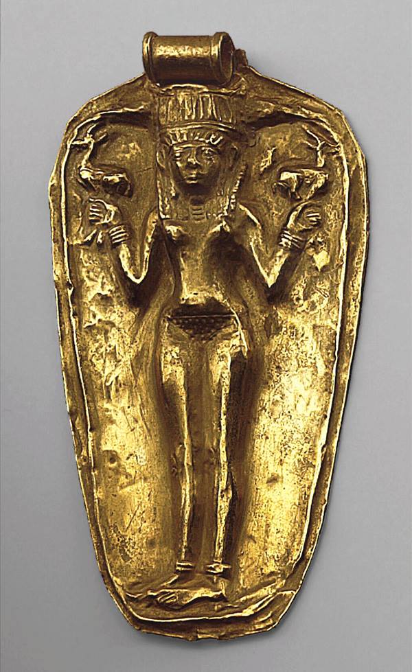 תליון ברונזה (Bronze) עליו תבליט אלה (כנראה עשתורת) המחזיקה ב-2 ידיה ב2 פרחי לוטוס. נמשה מהים מספינה שנטרפה ליד אולובורן (Uluburun) בדרום תורכיה. תקופת הברונזה (Bronze) המאוחרת
