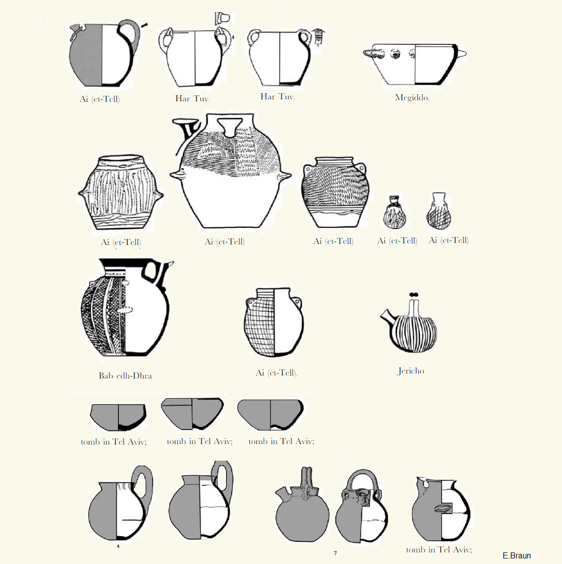 תרשים כלי חרס צבועים ופכיות. תקופת הברונזה הקדומה 1