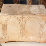 2 גלוסקמאות מעוטרות בקשתות. ככל הנראה הן מתארות “ארקוסוליום” (arcosolium) – “נישות” (כוכים) שנחצבו בתוך מערות הקבורה להנחת המתים.