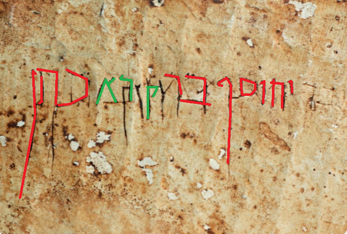 הגלוסקמא השנייה נושאת את הכתובת “יהוסף בר …. רא כהן”. קריאת שם האב בגלוסקמא זו קשה אך סביר ושם האב היה “גיורא” או “עזרא” או “קורא”.