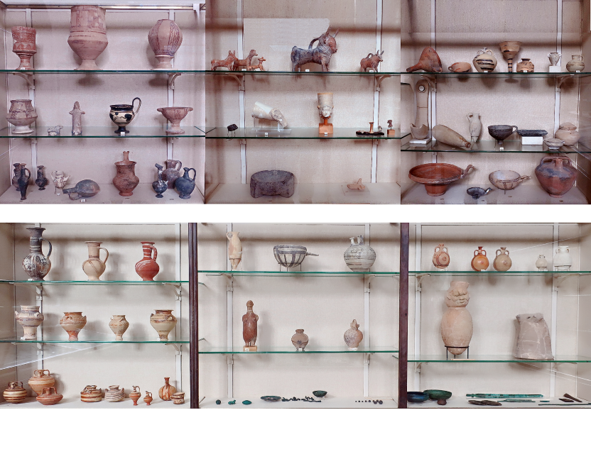 2 ויטרינות במוזיאון רוקפלר בירושלים של כלים בעיקר מלכיש, בית שאן, תל אבו הואם (חיפה), גזר ומגידו מתקופת הברונזה המאוחרת.